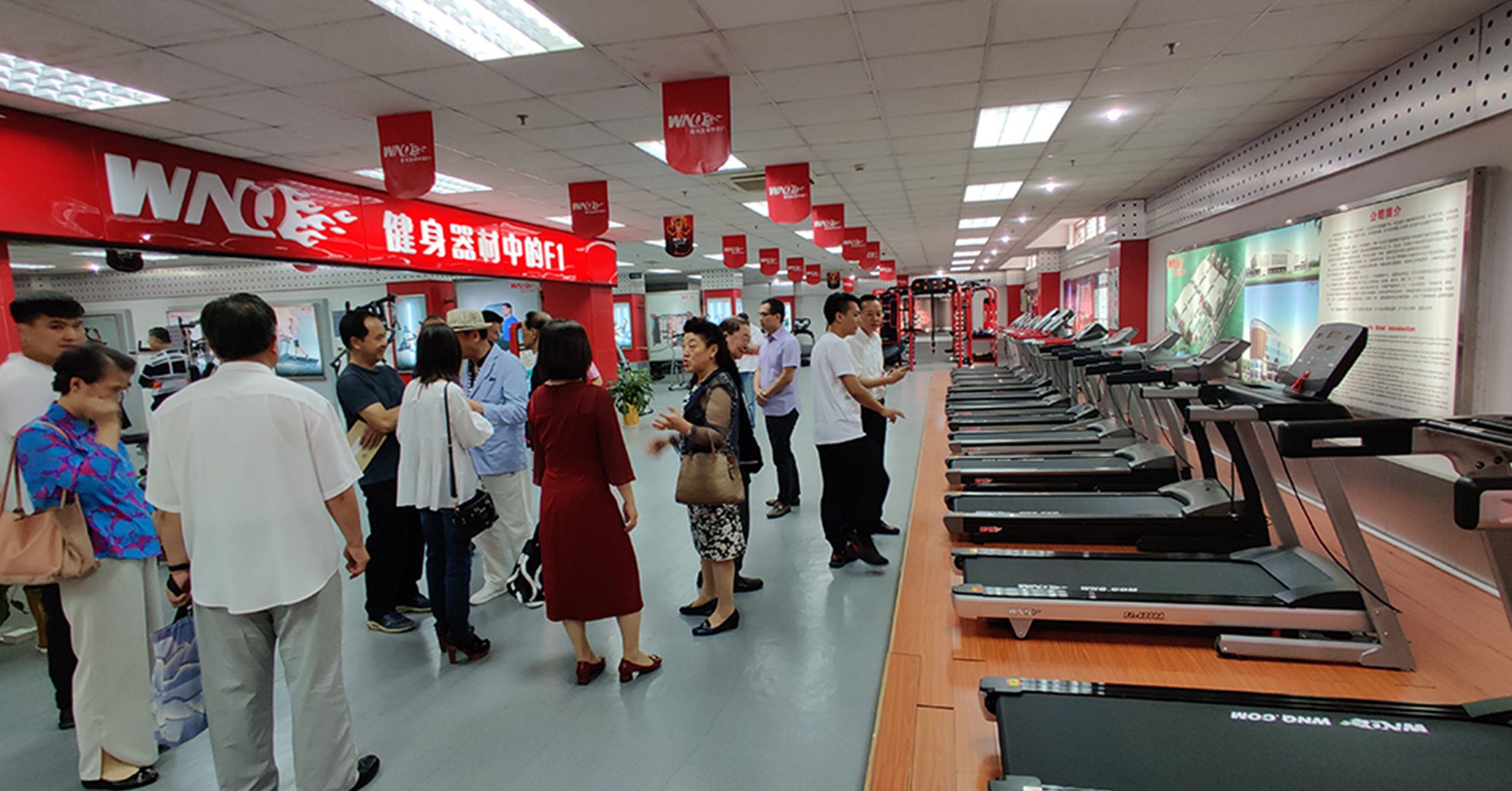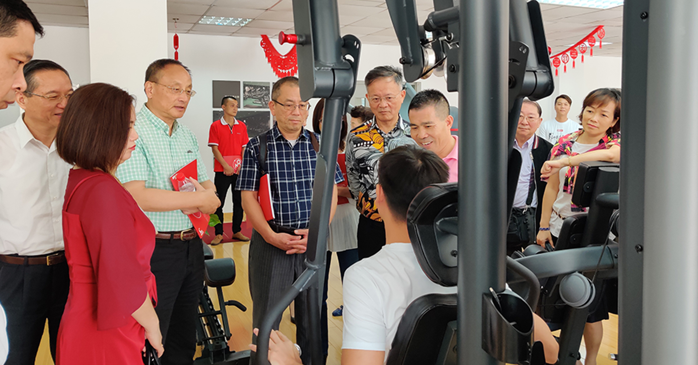 首先,来宾一行参观考察了三亿体育的文化长廊,对我司的发展历程、企业文化、企业特色等方面进行初步了解。在参观一楼与负一楼展厅过程中,来宾一行对三亿体育种类齐全的健身器材表现出浓厚的兴趣。